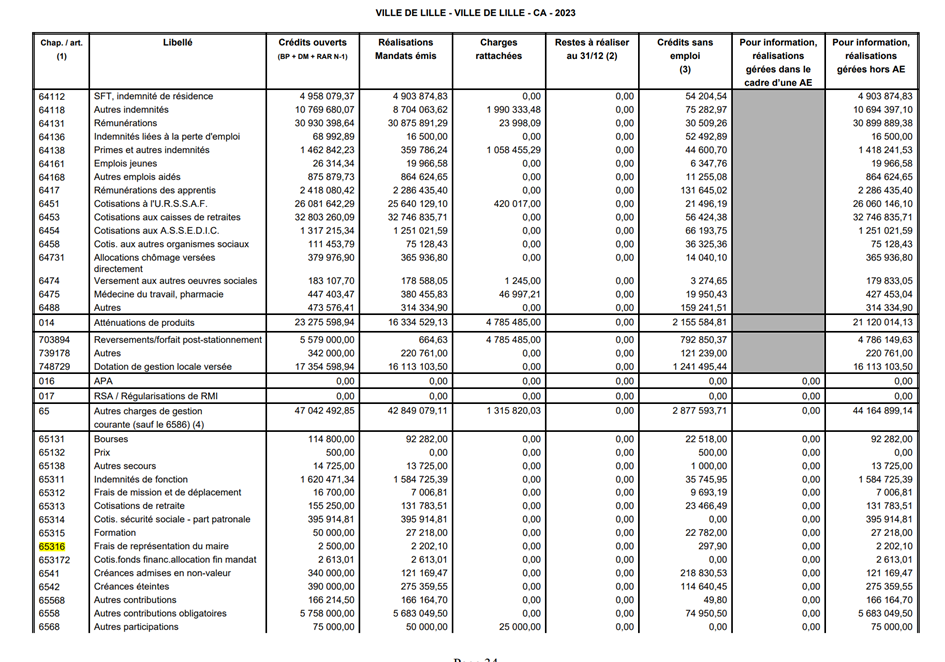 ligne des frais de représentation du maire au compte administratif adopté