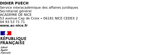 L'adresse électronique "[Rectorat de l'académie de Nice request email]" est, quant à elle, désormais le contact privilégié pour les interlocuteurs extérieurs à la région académique ou pour l'envoi d'information n'appelant pas de réponse de nature juridique.
